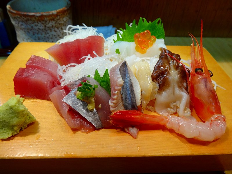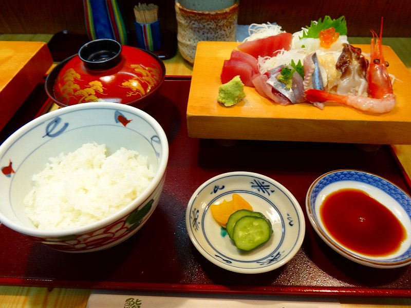 注文したのはお刺身定食。ご飯少なめ。