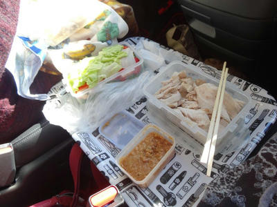 そこからちょっと行ったところに駐車スペースがあり、絶景ポイントでお昼を食べることにした。