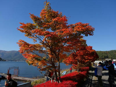 途中の河口湖美術館あたりの紅葉がめちゃくちゃきれいだった!