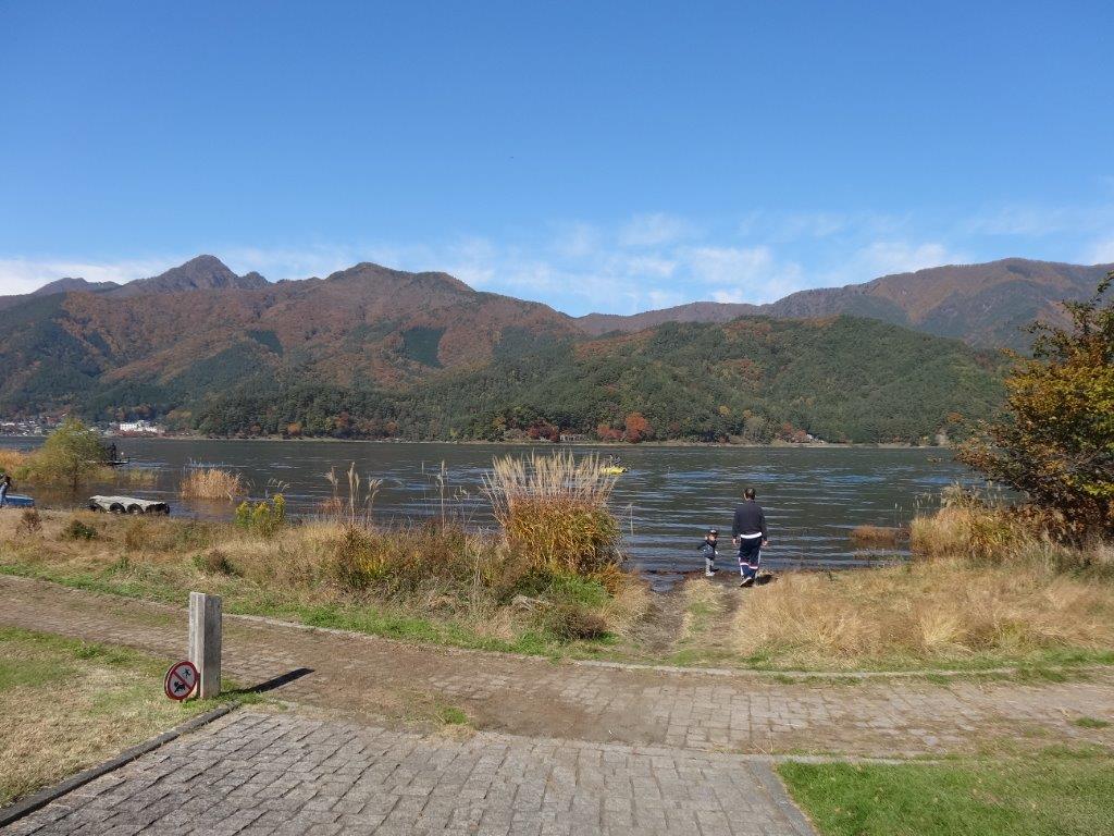 湖畔でのんびりと景色を堪能し、道の駅の展望台にも上がって景色を眺め、富士五湖の紅葉を見納め。