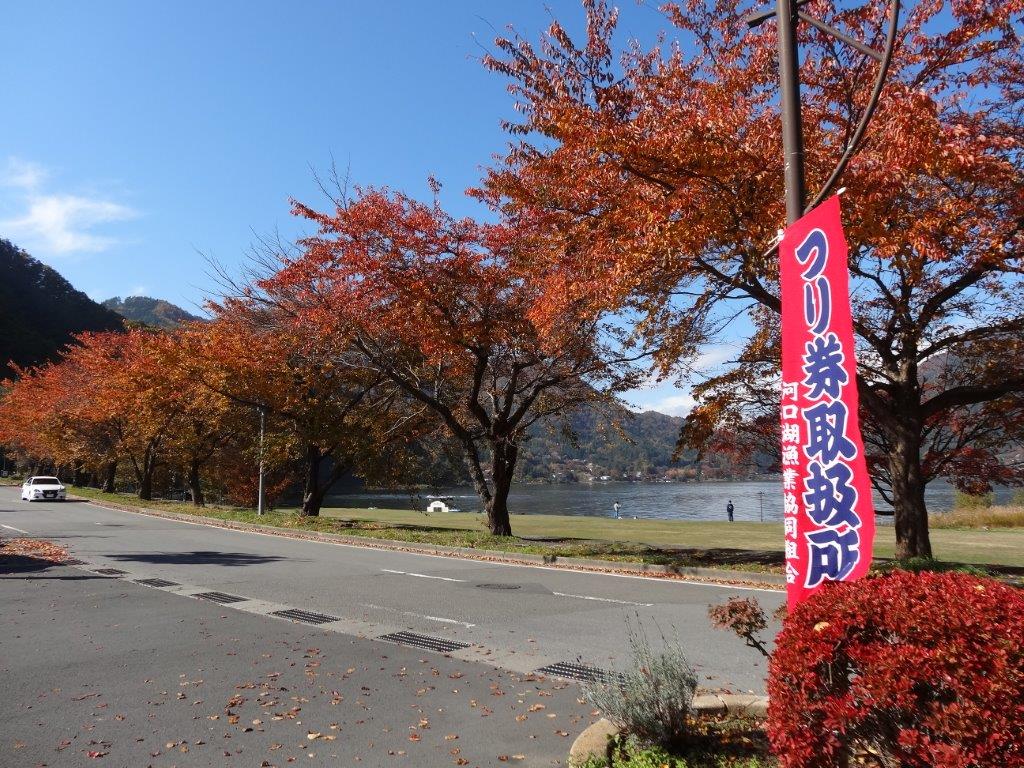 紅葉がきれいな道路を通り、河口湖へ行くと道の駅かつやまがあった。
