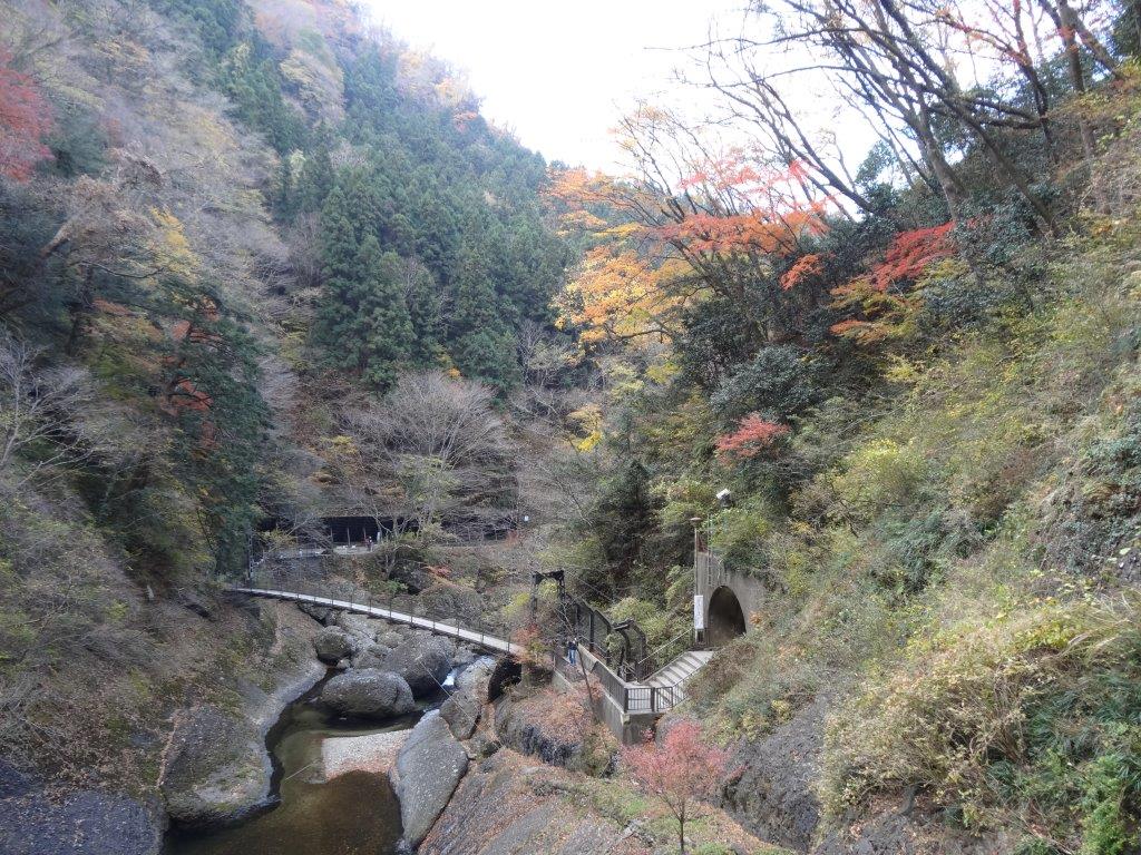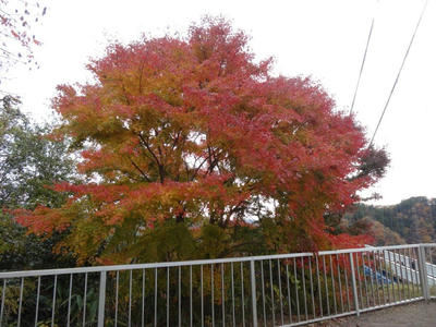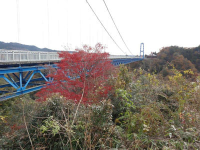 道中で一番キレイだったのは、竜神大吊橋へ行くために上り坂になる道沿いの紅葉かな。