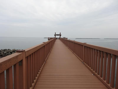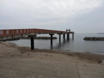 この道の駅には「夕凪の橋」という木製の橋が海に向かって突き出ている。