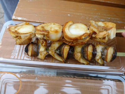 ホタテとナントカ貝。名前は忘れてしまったけど、サザエに似た触感で歯ごたえがあって美味しかった。