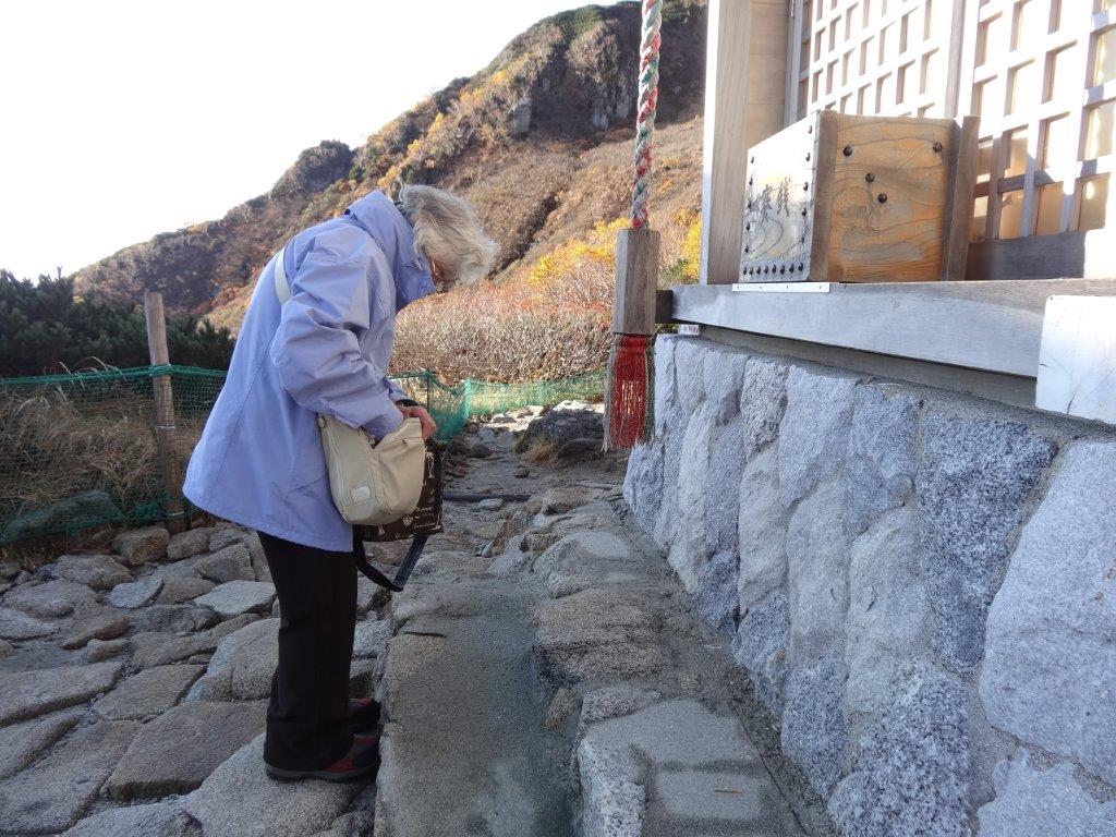 2017/11/12 Category : フリードプラスで車中泊 -千畳敷カールの紅葉2017- フリードプラスで車中泊 ~千畳敷カールの紅葉狩④/紅葉狩編~ 2017年10月8日(日) 千畳敷カール散策 ようやく千畳敷に到着。 気温16度と温かい。 降りるとすぐに、雄大な景色が! 遠くに富士山が見えますが、信じられなくて思わず小声で母に「富士山だよね?」と確認(笑) 確かに富士山です。 富士山が見られるなんてなんとラッキーな。 この素晴らしい景色と朝日を浴びながら朝食にします。 ヨーグルト。スプーン忘れてきちゃった。 昨夜の残りのサンドイッチ。 さて、食べ終わったらいよいよ歩きますか。 千畳敷ホテルの表側に回ると、こんな景色。 やはり紅葉はもう終わっている。 ロープウェイに乗っていた時が一番きれいだった。 駒ヶ岳神社にお参りして今日の無事を祈る。 足元がよくないので、一歩一歩着実に歩く。 遊歩道だと聞いていたけど、歩きづらいな。 雲一つないよい天気。 30分くらい歩くと、登山口と遊歩道の分岐点が出てきた。 我が家はもちろん遊歩道。 でも大勢の人が山道を上がっていった。 すごい急な登りなんだけど、みんなすごいなー。 帰りはどうするんだろう? テント泊かな。 ロープウェイ乗り場では帰りも行列になるのでお帰りはお早めにとしきりに放送していた。 帰りも大変そうだな。 我が家は遊歩道をどんどんと下りていく。 向こうの山が黄色く色づいているんだけど、写真では分かりづらいです。 雲海っていうのかな。ずっと見えてました。 とにかく良い天気で暑い! 防寒にいろいろと持ってきたけど、ほとんど要らない。 普通の服装で大丈夫だった。 いよいよここまで下ってきた。 絶景だぁ。 きれいな水をたたえた剣ヶ池。 向こうに見えるのがホテル千畳敷。ロープウェイの発着所。 あそこまで登るのか…。 さあ上りだ。 石が大きくて、足が上がらない。 ちょっと歩いては少し休む。なんだか心臓がおかしいぞ。 高地だから酸素が薄いのかな。 またちょっと休憩。 ひーはー言いながらやっとのことでホテル着。やりました! やはり1時間くらい歩いたかな。それとももっとかかったかな。 次のロープウェイまで少し時間がありそうなので、建物の中をうろうろ。 かわいいお出迎えもいました。 スタンプがあったので押して遊んだりしていたらロープウェイの乗車時間になった。 この時点で9時20分くらい。 帰る人は15人くらいだったかな。余裕で乗れた。 ロープウェイの中からが一番キレイなんだけど、うまく撮れない(泣) 朝よりも日差しを浴びてより一層きれいだった。 ロープウェイを降りたのは9時半頃。あたりには大勢の人が待っていた。 この時点で2時間待ち。 バスの時刻表を見ると9:50というのがあったので、のんびりトイレにでも行って待つか~と思っていたら、臨時のバスが出るという。 バスを待つ人なのか、ロープウェイを待つ人なのか分からないくらい 急いで臨時のバスに乗ることにした。 このバスは菅の台バスセンター駐車場までで、駒ヶ根駅までは行かない、とのこと。 駒ヶ根駅まで乗りたい人もたくさんいるみたいで、臨時のバスに乗らない人も多かった。 狭い道路なので、バスは無線でやりとりしながら山道を下っていく。 通常だと30分程度で着くところ、40分くらいかかって菅の台バスセンター駐車場に到着。 10時20分頃に着いたが、まだバスに乗る行列はできていた。 この時点で1時間半待ちくらいだったかな。 ここで無事に乗れても、ロープウェイでまた待つんだな。 今並んでいる人たちは、いつ千畳敷に着くのだろう? さて、一仕事終えた我々は、隣の施設で何か催し物をしているようなので行ってみることにした。 隣には、農産物直売所や観光案内所があり、現地の特産物の販売をしていた。外のテントで蜂蜜を購入し、そのあとずっと食べたかったアイスクリームを食べることにした。 とにかく、下界に降りてきてから暑い!今日は25度くらいあるんじゃないだろうか。 冷たいものが食べたい! ソフトクリームも美味しそうだったけど、ジェラートにしてみた。 久しぶりにブルーベリー食べたかも。 甘味は抑え目で美味しかった♪ 車に戻り、ちょっと早めのお昼ご飯。 まだポッサムが残っていたので、車内でいただくことにする。 駐車場内はだいぶ車がなくなっていた。 みんな早く行って早く帰るんだな。 暑かったけど、両サイドのドアを開けたら風が通ってちょうどよい。 食後は温泉に入ってから帰宅しましょう。 1時間散策しただけで汗をかいたからね。 着込み過ぎという噂もあるが…(笑) 温泉は駒ヶ根高原家族旅行村内の「露店こぶしの湯」 時間的に空いているかと思いきや、さすがは日曜日、そして3連休の中日、混んでいました。 激混みではないですが、割と繁盛していました。 お風呂に入っている頃には山に雲がかかっていて、やはり山は午前中に限ると思った。 が、これはもしかして、上から見たら雲海?とかも思ったりする。 さっぱりしていざ東京へ!中