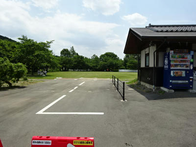 ↓右がトイレ棟。奥が原っぱ広場みたいなところ。夕方にはこの奥まで車でぎっしりになった。駐車場の写真がなくてすみません。