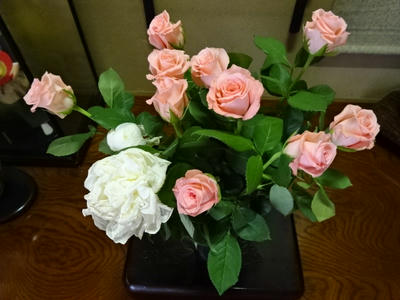 駅近くの広場で、バラの花10本300円!破格の値段に思わず20本買ってしまった。