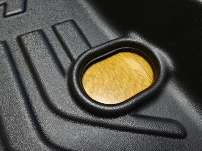 金具を回避するこの穴のせいで、トレイがフラットではなく、しかも1cm高くなってしまう。意外な落とし穴でした。