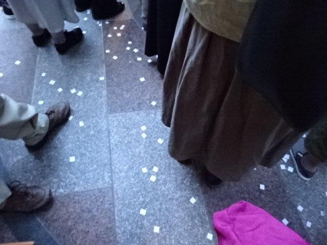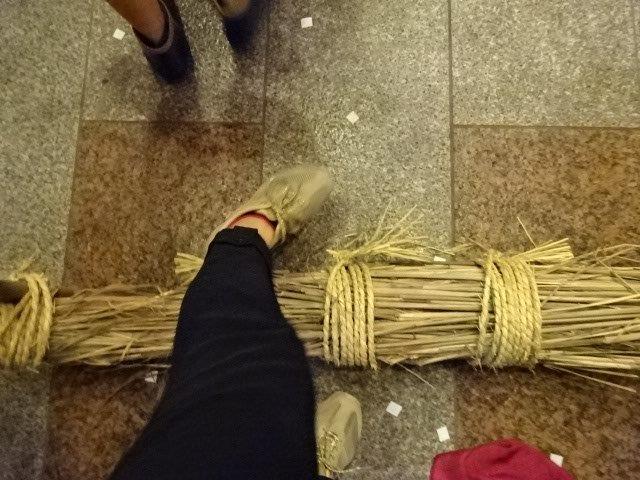 それを持ったまま、次は茅の輪くぐりの神事です。大勢なので、大きな輪を描きながらぐるぐると右に左にと周ります。