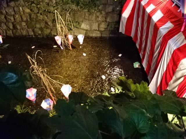川にはすでに儀式の飾りがセットされています。