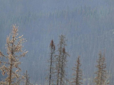 さっそく町中にエルクがいた。エルクは民家の庭まで入ってくるとか。それを防ぐために塀の上にさらにロープを張っている家もあった。