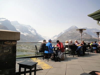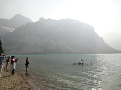 レイクルイーズをちらりと見ると、山々が煙っていてよく見えない。前に観光しておいてよかった。