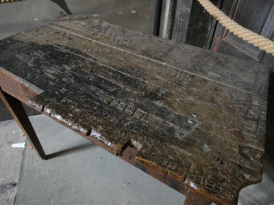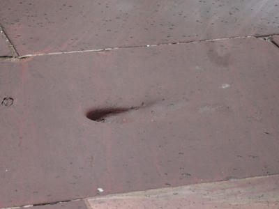伝説ではお城が火事になって騎士が甲冑を着たまま窓から飛び降りたら窪んでしまった窪みが残っているらしい。本当かなぁ?