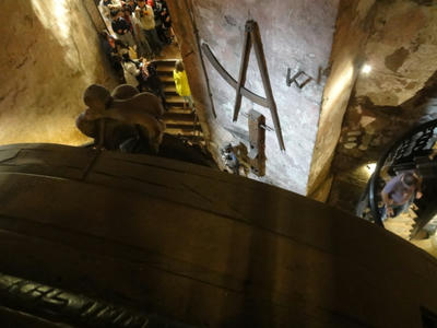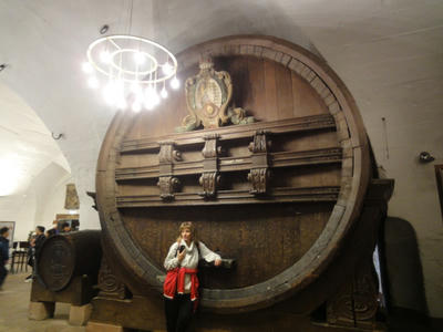 もっと大きな酒樽はその上に階段で上れる。大きすぎて写真に収まらない。