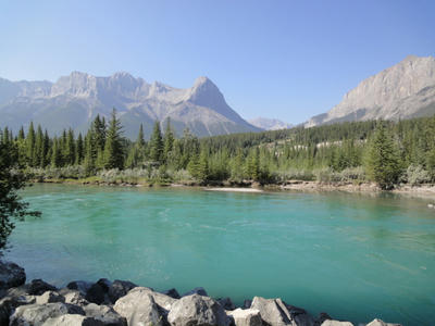 1時間程度歩くとボウ川に出た。どこから見てもよい景色だ。