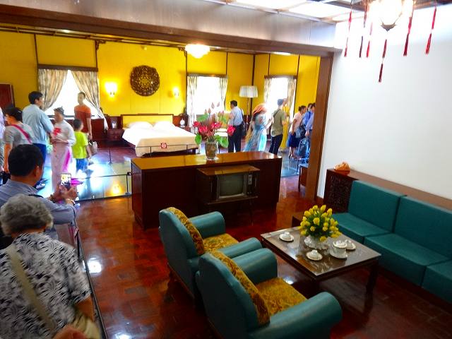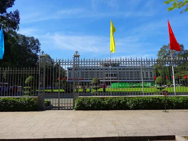 ここは、南ベトナム大統領府及び官邸として使われていた建物で、1975年ベトナム戦争終結時に、サイゴン市内に突入した北ベトナム軍の戦車がこの建物のフェンスを破り突入。こうして南ベトナムの首都サイゴンが陥落したあとは、共産主義の統一国家であるベトナム社会主義共和国が成立し、「統一会堂」と改名された。
