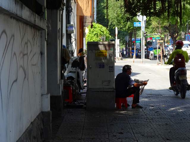 歩いていると道端でお店を開いている理容店に遭遇。