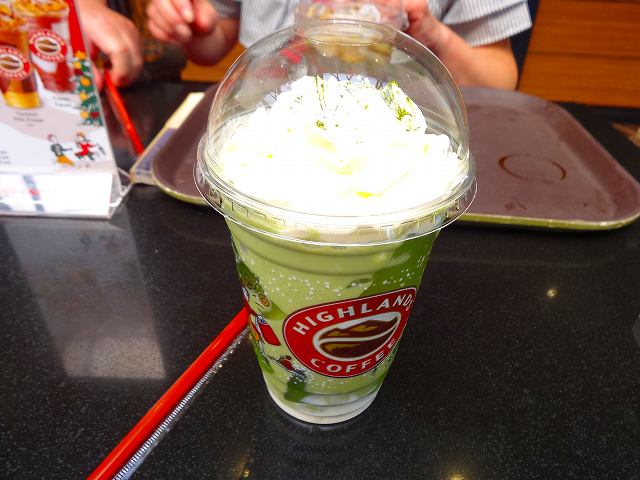 博物館の入口脇にあるコーヒーチェーン店、「HIGHLANDS COFFEE」で甘――いグリーンティーナントカをいただく。