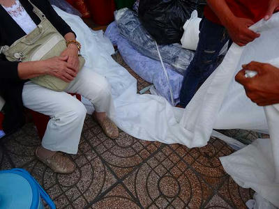 1枚を選んで値段を聞くと、1m300円だという。もっと安くして、と言ってもお店の人はどこかに行ってしまった。1m300円で手を打つか。きっと観光客値段なんだろうけど仕方ない。日本では300円では買えないから。