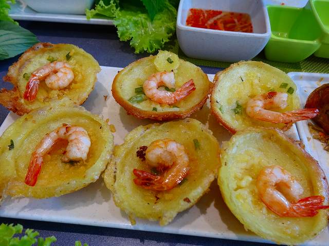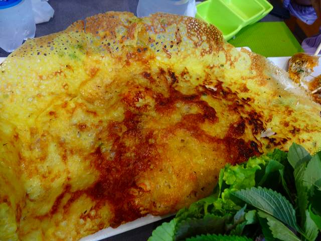 これがバインセオ。ベトナム風お好み焼き。はねの部分が巨大。