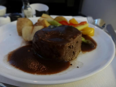 メインはまた肉をオーダー(笑) この肉、羽田-トロント線よりもパサパサでおいしくない。