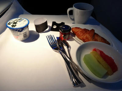 フライト時間は1時間程度と思っていたら、もっと短いらしく、CAさんが焦っていた。