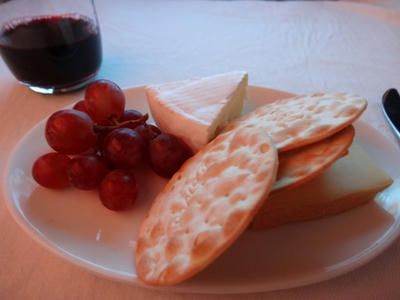 食後のフルーツとチーズ。ポートワインと共に。このワインが甘くておいしかった。