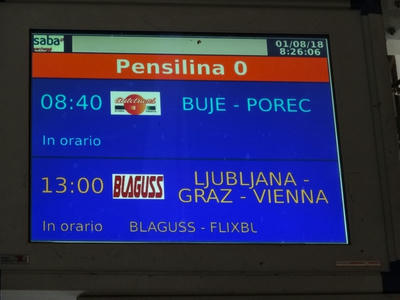 15分くらい遅れてバスが来た。ザグレブ発プーラ経由トリエステ行き?すごいな。何時間かかるんだろう。