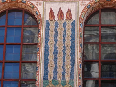 どこから撮ったのか忘れてしまったが、建物の壁に残るモザイク。