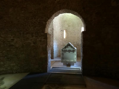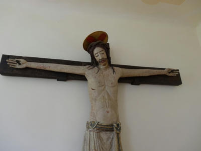 次は司教の居住空間を見学。 なんかこのキリスト、修復したそうなんだけど、顔がはっきりしすぎ。修復失敗みたいな。