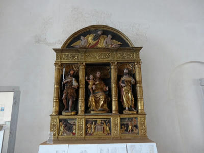 洗礼盤があったところ 奥に鐘楼入口がある。