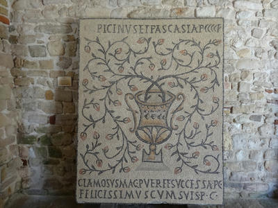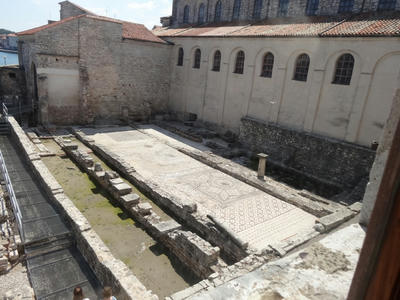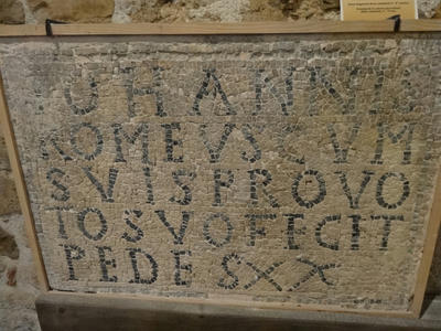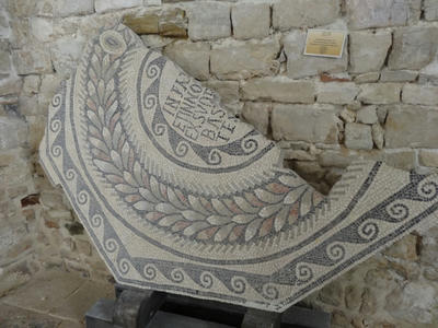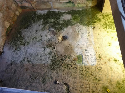 古い時代(4世紀半ば)のモザイクが残っている。邸宅らしい?雨ざらしなんだな。