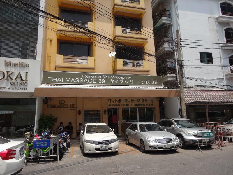 駅に無事到着し、チットロムからスクンビット線でプロムポン駅まで。駅からは徒歩数分で「ワットポー・マッサージスクールスクムビット校・直営店39」に到着。