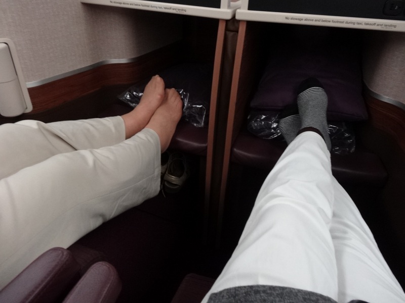 タイ航空のビジネスクラスは隣と近い。隣が知らない人ならちょっとヤダ。