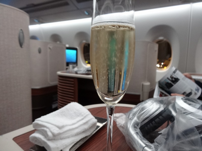 ウェルカムドリンクにシャンパンをいただいて、すぐ寝よう。