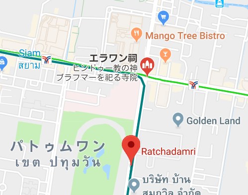 BTSサパーンタクシン駅から乗り換えずにラーチャダムリ駅で降りて歩くか、シーアムで乗り換えてチットロムから歩くか、悩めるところ。