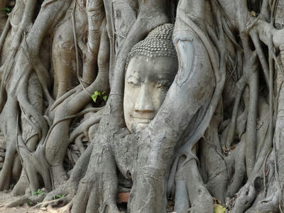 次は菩提樹の中に埋まった仏像の頭で有名な「ワット・マハタート」へ。