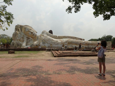 サットーンの桟橋からボートで1つめ、「ワットワラチャンヤワート」で下り、涅槃像に出迎えられながらマッサージのお店を探す。どこがいいのかよく分からないが、どこも暗いから嫌だと母が言い出し、結局一昨日行ったマッサージ店へ。ここはいつもお客さんがいて、とても繁盛している。上手なのかな、どうなんだろう?