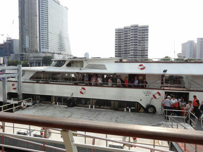 ここから確か無料のボートがサットーンまで出ているはずなんだけど、ガイドさんも知らないようなので車でホテルまで送ってもらうことにした。