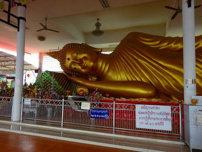 ボートを見ると、何度か来ていたボートと同じなので、誰も乗せずに行ってしまったのではなく、誰も乗らなかっただけだったんだ。5分も乗ったかな、あっという間に次の停留所「「Wat Worachanyawas」に到着。降りたとたんに涅槃像。