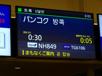 NH849 羽田発0:30→バンコク着5:30】 世界一周航空券第4区間