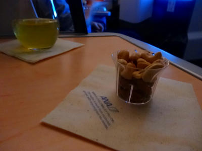 安定飛行に入り、飲み物やおつまみが提供される。