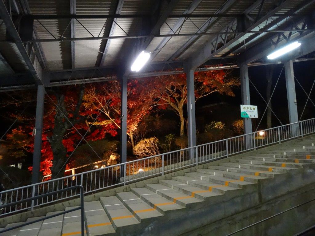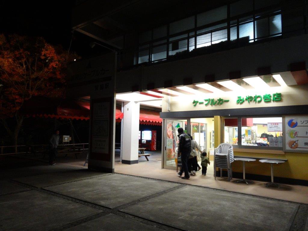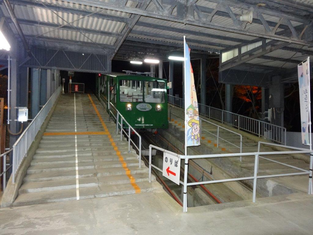 2017/12/19 Category : フリードプラスで車中泊 -茨城縦断紅葉2017- フリードプラスで車中泊 ~茨城縦断紅葉狩の旅⑤ 那珂湊と筑波山ケーブルカーライトアップ編~ 2017年11月22日(水) 続き 袋田の滝→竜神大吊滝→花貫渓谷 と観光しました。 花貫渓谷の出発が1時半、予定ではパワースポットの御岩神社に行く計画だったけど断念し那珂湊へ。下道を通っていくので2時間かかる計算だ。だいぶお昼御飯が遅くなるなぁと思う娘であった。花貫渓谷から常陸太田方面へ。そこから海沿いの道を行く。海沿いの245号線は意外と都会で、信号もあるし車も多い。 でも海が見えるとテンションが上がる♪ やはり予定通り3時半にやっと那珂湊おさかな市場あたりに到着した。 駐車場が分からずウロウロしたが、大きな駐車場に止め、(4時間100円)おさかな市場へ。ところが行こうとしていた那珂湊おさかな市場はほとんどの店舗がやっていない(泣)もう終わってしまったのか、休みだったのか?立ち食いの海産物を期待していたのに、ガッカリだ。仕方なく、貝を焼いていた出店が1つだけあったのでホタテとサザエを食べた。 すでにサザエは一粒食べられ済みですが…。まあこんなもんでしょう。那珂湊おさかな市場以外のお魚屋さんは開いていた。お刺身が欲しかったんだけど、お刺身セットのようなものはなく、マグロの短冊になってしまう。でも安いなあ。今晩帰るなら持って帰りたいところ。すごく悩んでいたら、生本マグロの中トロと生カツオを2つで2500円にしてくれるというので購入。時間も時間だから、大サービスしてくれた。発泡スチロールに氷をたくさん入れてくれて、厳重に密封。帰るのは明日だけど夏じゃないから大丈夫でしょう。帰りに美味しそうなタコ焼き発見。小さいタコが丸のまま入っていて5個で600円なり。できあがるのを少し待ち、アツアツをいただいた。おいしかった。 小さいタコが一匹入っている。 この時点ですでに4時半。 大洗磯前神社や大洗アウトレットに行くなんてとんでもなくなりました。 高速に乗って筑波山神社へ! 筑波のあたりはすでに暗くなり、山へ上っていく道も暗い。 ケーブルカー乗り場がよく分からず、神社関係者の駐車場に入ってしまう。 丁寧に追い出され、神社の有料駐車場へ止めた。 しかし、ケーブルカー乗り場はさらに急な坂を上がったところにある。しかもケーブルカー乗り場に近い方にも有料の駐車場があり、そこに止めなおすことにした。 筑波山神社の駐車場は1時間無料なので、まだ車を出しても無料だ。 真っ暗な中、急な坂を上がり駐車してケーブルカー乗り場の宮脇駅へ。 駅は明るいのに、駐車場あたりは暗く、もう泣きそう。 帰りが怖いので、ペンライトを用意し、なんとかして駅へたどりついた。 この上がチケット売り場と改札口。 普段は16:20が最終らしいのだが、紅葉のこの時期はライトアップしてさらに遅くまで営業するらしい。 ただし、雨が降ったら動きません。 20分ごとに出発するのでしばらく待って乗車開始。 急な山道をゴトゴトとケーブルカーが登っていく。 でも意外に速くて、ライトアップの写真は無理でした(泣) ただ…。 紅葉のきれいな所だけをライトアップしているのです。 区間全部じゃない。 箱根の登山電車の紫陽花ライトアップみたいなのを想像していたら肩透かし。 しかも、やはりもう見ごろは過ぎていて、あんまりぱっとしないライトアップ見学となってしまった。 頂上に着いたら小雨が降っていて、あたりは真っ暗。 街の明かりはきれいだけど。 こんなもんだし。 特にやることもないので5分後に出発する帰りのケーブルカーに乗って帰ってきてしまった。 他の方々はたぶん、もう少し遊んだりレストランで食事でもしたりして帰るのかな。 この時は、宮脇駅の周辺が一番きれいだった。 このケーブルカーライトアップが引き金となり母の不満爆発である。 まず計画通りに進まないこと。計画に無理がある、詰め込み過ぎだというのだ。 しかしよくよく聞いてみると、本当の不満は花貫渓谷で歩かされたことと、このケーブルカーに一人往復1,000円もかかったことらしい。 ライトアップできれいだと思ったことは一度もないので、今度からライトアップは見ません!宣言をされてしまった。 そして、今まで娘の独壇場であった計画作成に口を出す、というのである。 それは嬉しいような面倒なような…。 旅行に前向きなのは嬉しいけど、娘が行きたいところが行けなくなったりするのは嫌だなぁ。 よっぽど、のんびり車中泊が気に入ったらしい。 宮脇駅を後にし、駐車場に戻る。 やっぱり懐中電灯があってよかった。真っ暗なのだ。 駐車場で他の車もいないので、晩御飯を食べさせてもらいました。 真っ暗なので、LEDライトをつけて。近くを人が通ったらびっくりするかな。 母手作り弁当はまだあって、今日はレンコンハンバーグとサラダ。 さて、食後はここから車で30分の、ビアスパークしもつまに行ってお風呂に入ります