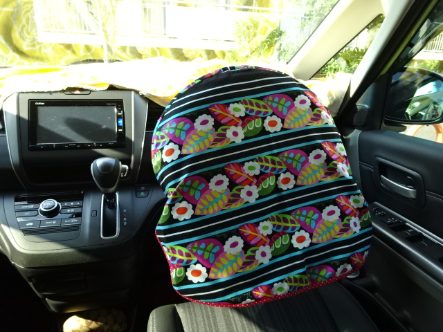カデコをまねて、母に作ってもらいました。ハンドルカバーと、お揃いのティッシュカバー。