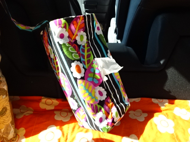 カデコをまねて、母に作ってもらいました。ハンドルカバーと、お揃いのティッシュカバー。