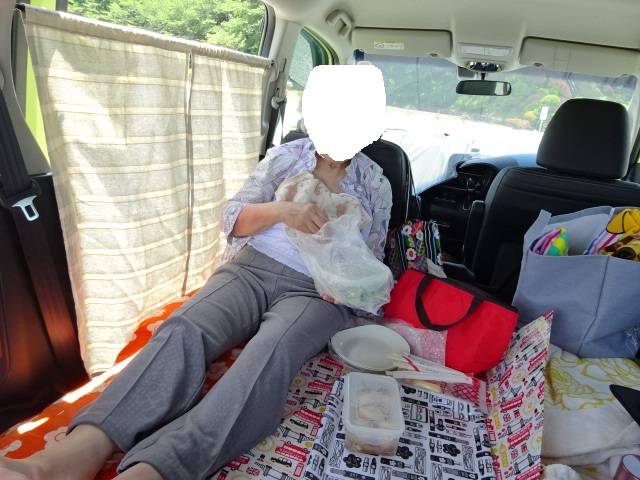 リアゲートを開け、気持ちの良い風を入れ、車内でお昼ご飯を食べる。