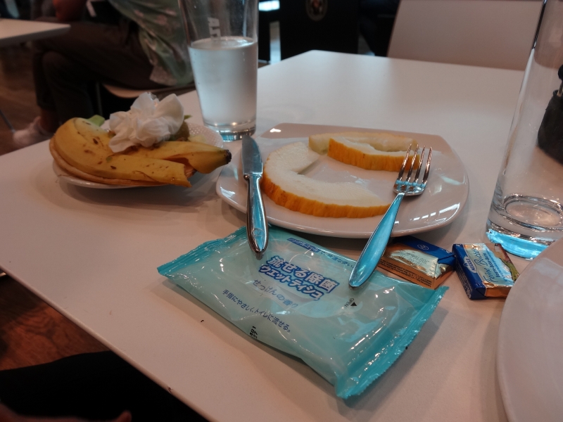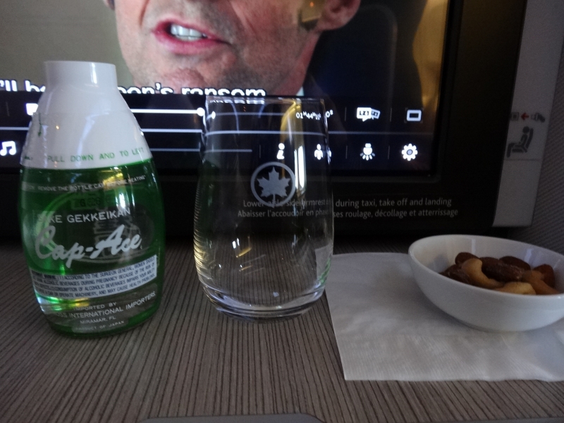 食前酒は日本酒だ! お猪口がついてるカップ酒。意外と飲める。