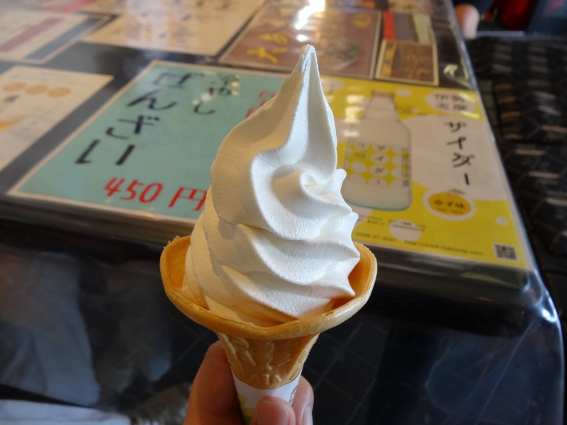 駐車場近くのお店で塩ソフト。塩っぽくないけど普通においしい。