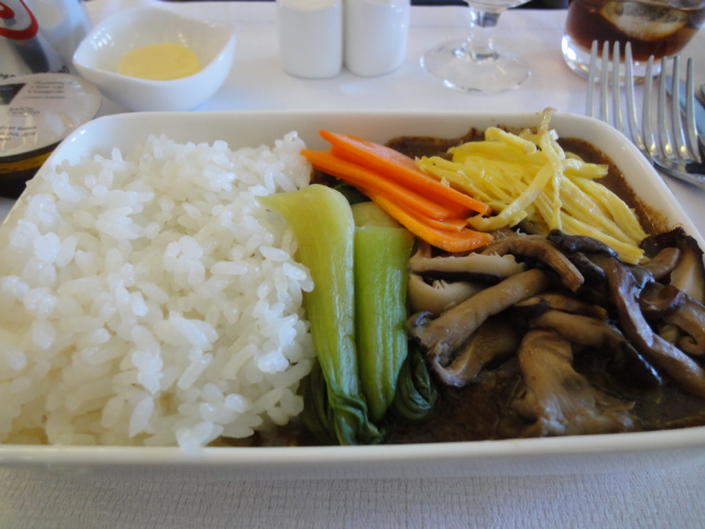 時差があるから飛行時間はあと5時間、しかも朝食で起こされるからあと3時間しか寝られない!