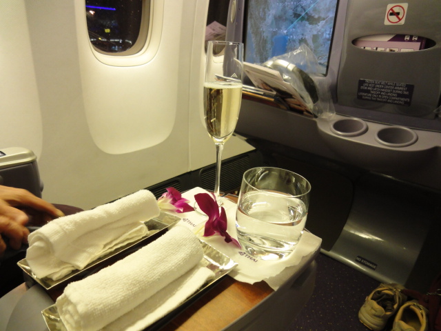 ウェルカムドリンクをいただき、そのあとの飲み物はと聞かれたけどいらない、と答え、水平飛行になったらすぐにシートを倒して眠りに入る。